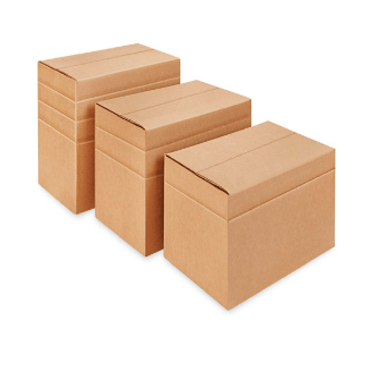 High-quality corrugated cardboard with three layers (white or brown), providing standard protection.